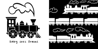 A high-contrast board book full of vehicles, designed for babies’ developing eyes by artist Janna Steagall Baby sees motorcycles. Baby sees cars. Baby sees trucks. Created for the youngest readers and their developing eyes, this high-contrast board book introduces all your favorite vehicles, including trains, planes, taco trucks, and even rockets. With simple text and trendy images and patterns by Janna Steagall, Baby Sees Things that Go is the perfect tummy time companion for babies on the go!