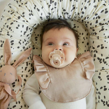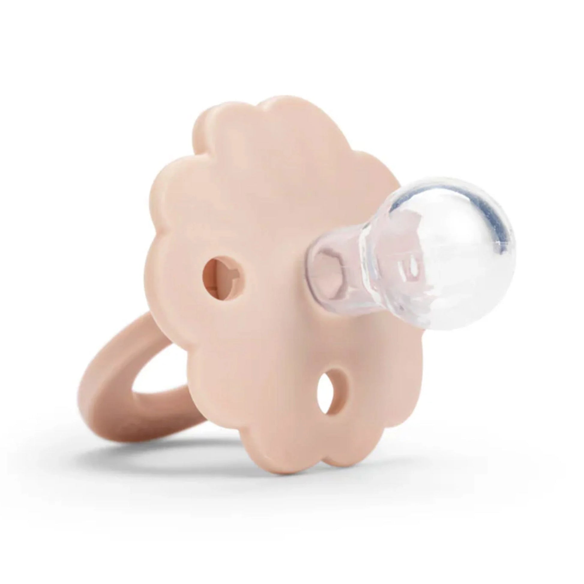 The Binky Bloom has a flower shape that is unique for Elodie and comes in shades that are easy to match with other accessories from our range. It features a symmetrical silicone teat and are suitable for babies 3 months and upward. The shield is equipped with three ventilation holes to allow air circulation and protect the sensitive skin around your baby’s mouth from irritation.