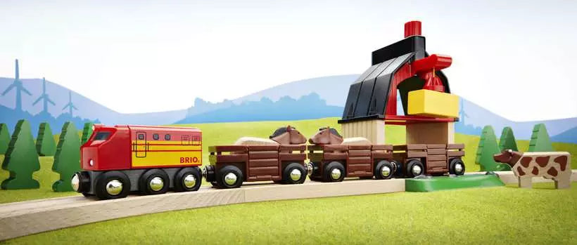 Part of the BRIO World: The Farm Railway Set is fully compatible with other BRIO sets, tracks and trains. BRIO products are made from very high-quality plastic and European beech wood from sustainable sources. The Trains, Wagons, Carriages, and Road Vehicles all feature the classic BRIO magnetic couplings allowing for easy connection to each other.