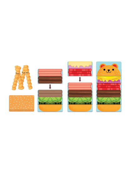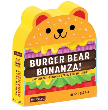 The Burger Bear Bonanza! Game from Mudpuppy is a fun new game to see who can really stack up! 2-4 players can match, stack, & steal toppings to build burger bears! Whoever completes 2 burger bears wins and is the bear to beat!