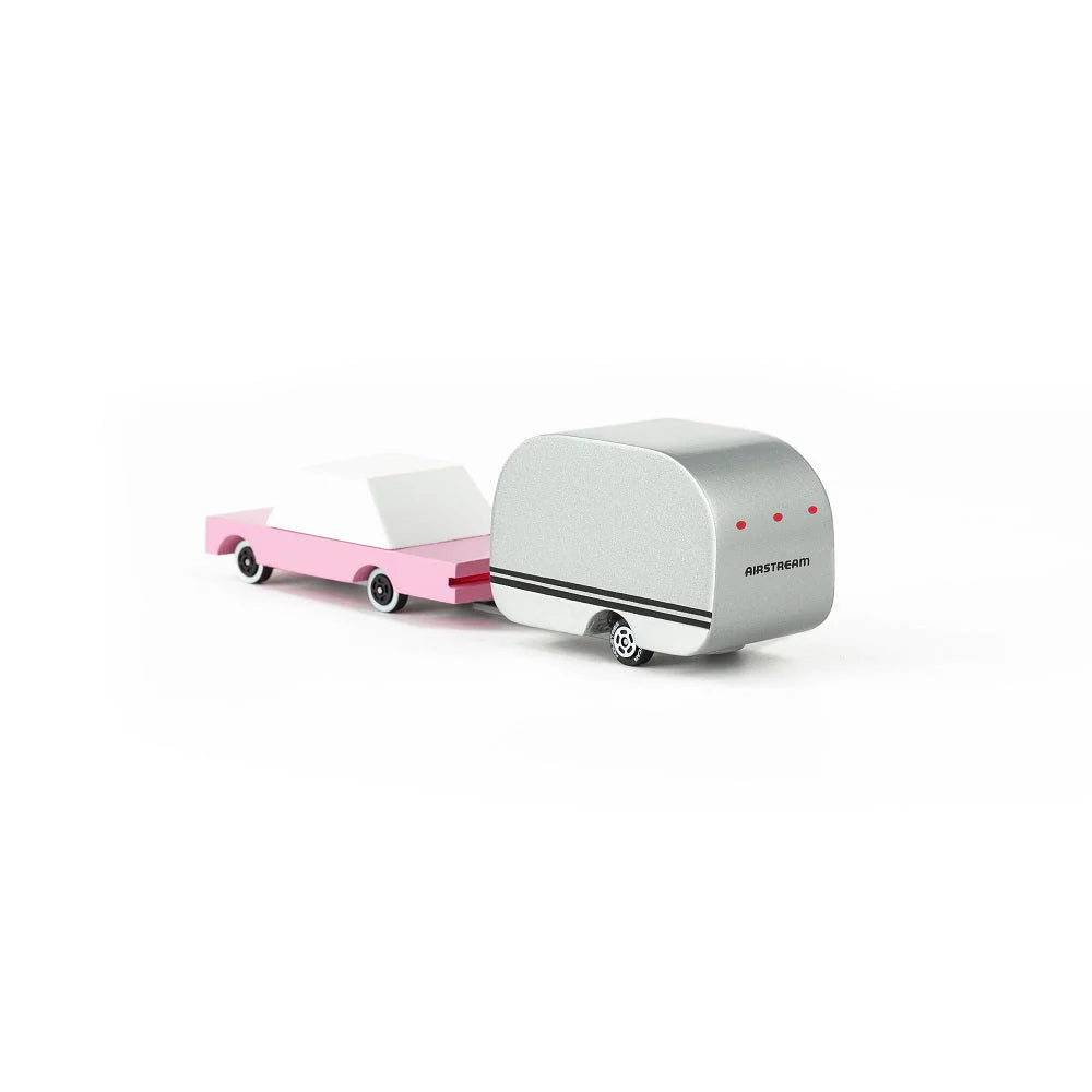 Official licensed Airstream product. Wooden diecast Candylab Airstream trailer to take your mini Candycars on the road. Note: current batch is silver without black striping..variations will happen with each production run.
