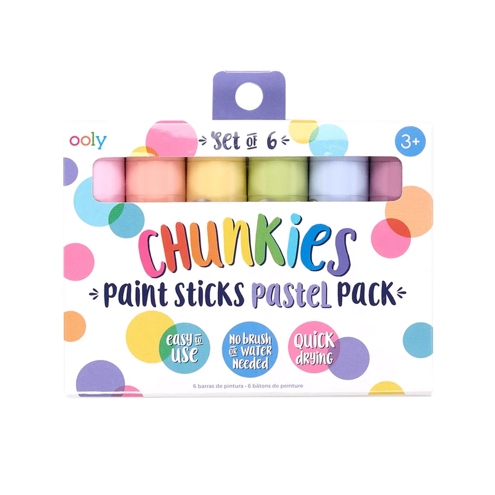 The beloved OOLY Chunkies Paint Sticks are now in pastel! These pretty pastel colored paint sticks are easy to hold, mess-free, and quick drying. Simply twist the barrel for fresh paint payoff without the water and brushes.