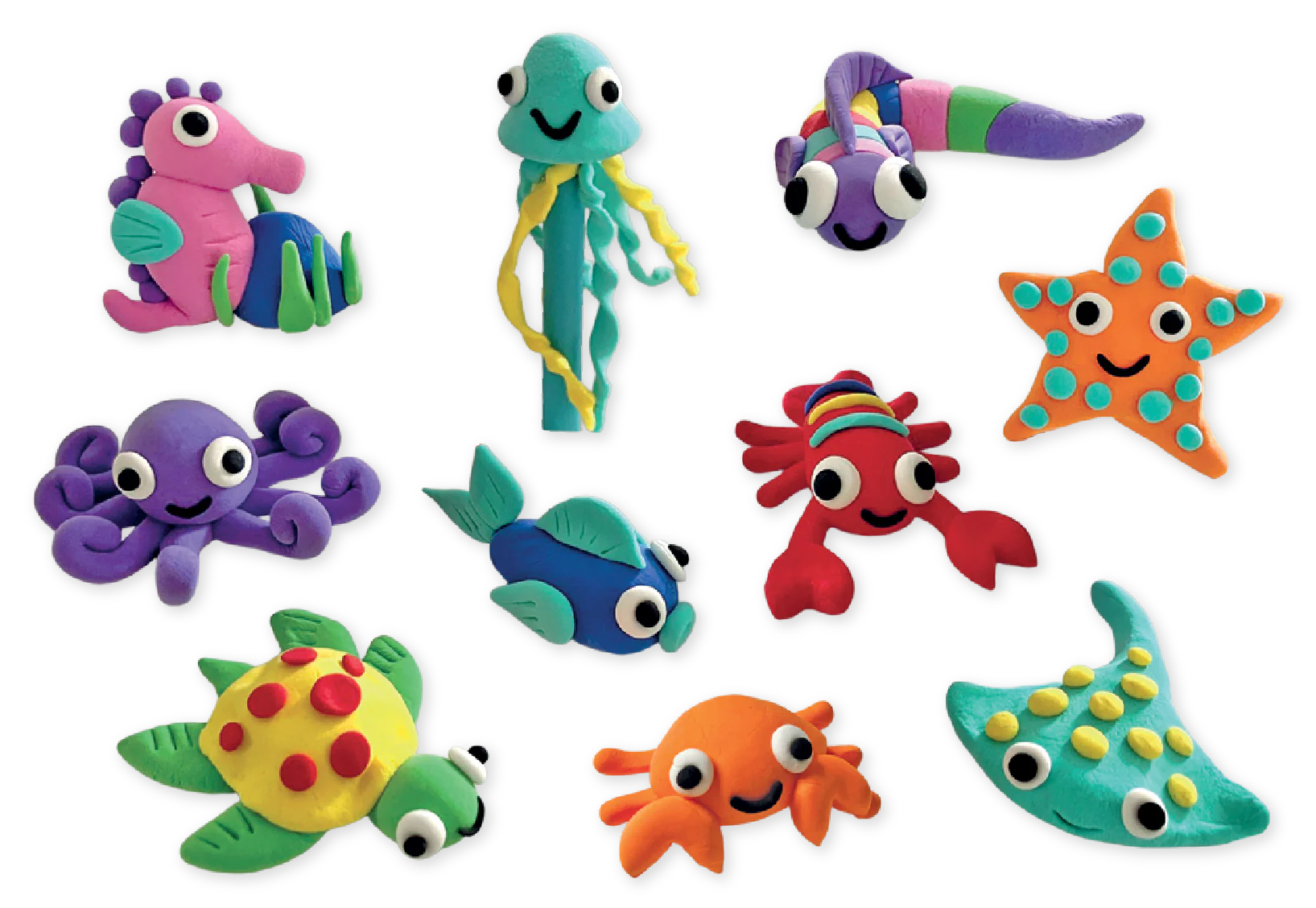 Our Ocean design enables you to create 10 fun sea creature friends by rolling, stretching and flattening the air dry clay provided. Use the wooden tool to add detail to your creations. The clay is soft to the touch and dries in the air, making it simple for little hands to work with (thanks to the silicone mat provided, there’s minimal cleaning up too).