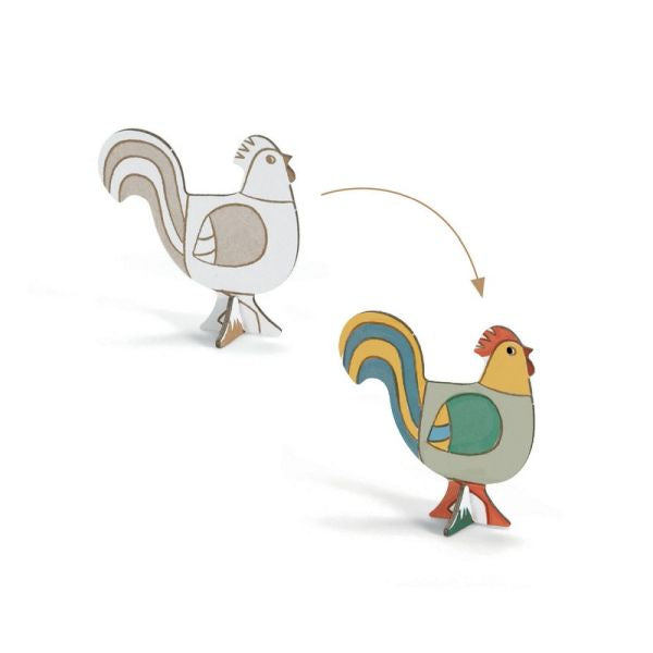 A creative kit with a multitude of cardboard pieces to colour and assemble to create farm animals and scenery. The child plays with all the elements he or she makes and it's the start of fabulous stories!