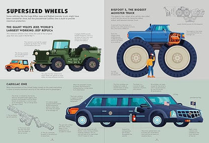 Find out about the largest, tallest, and most powerful transportation giants on Earth! The biggest monster truck, the tallest construction cranes, the longest trains, and many more fill the pages of this large format book. The detailed illustrations are accompanied by fascinating facts and figures about each vehicle.