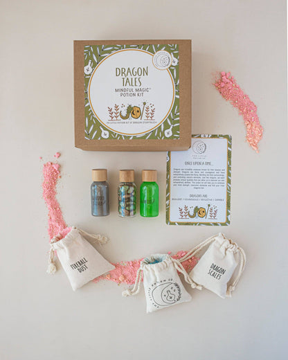 Dragons are fierce and courageous creatures who have extraordinary powers like flying, blending into their surroundings, and controlling nature's elements. Just like dragons, we each possess unique qualities. This potion kit will allow you to discover your own extraordinary abilities, embrace your inner strength, overcome obstacles and find your inner dragon roar.
