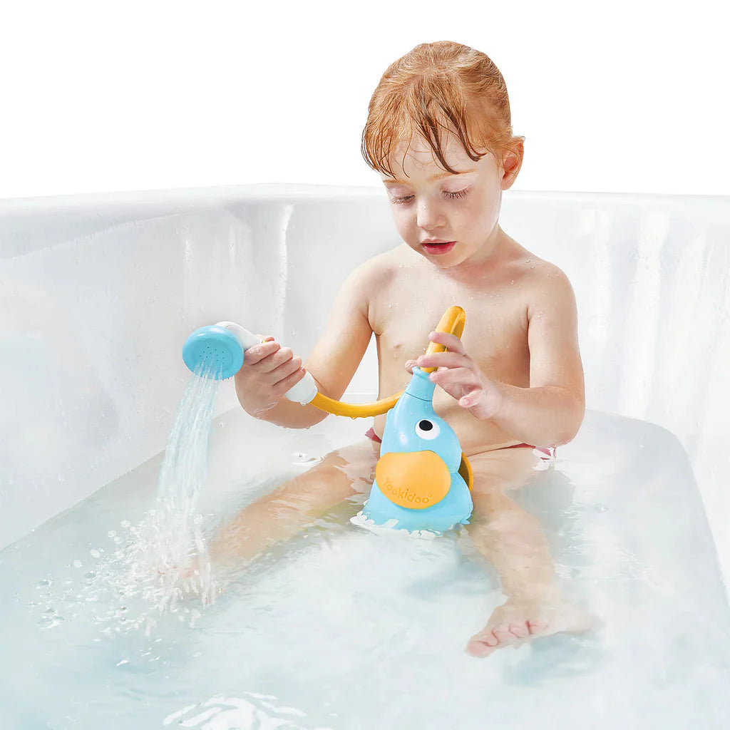 With your feet in the water and batteries in place, place the portable elephant, complete with water pump, anywhere, in any bathtub, and start celebrating bath time.