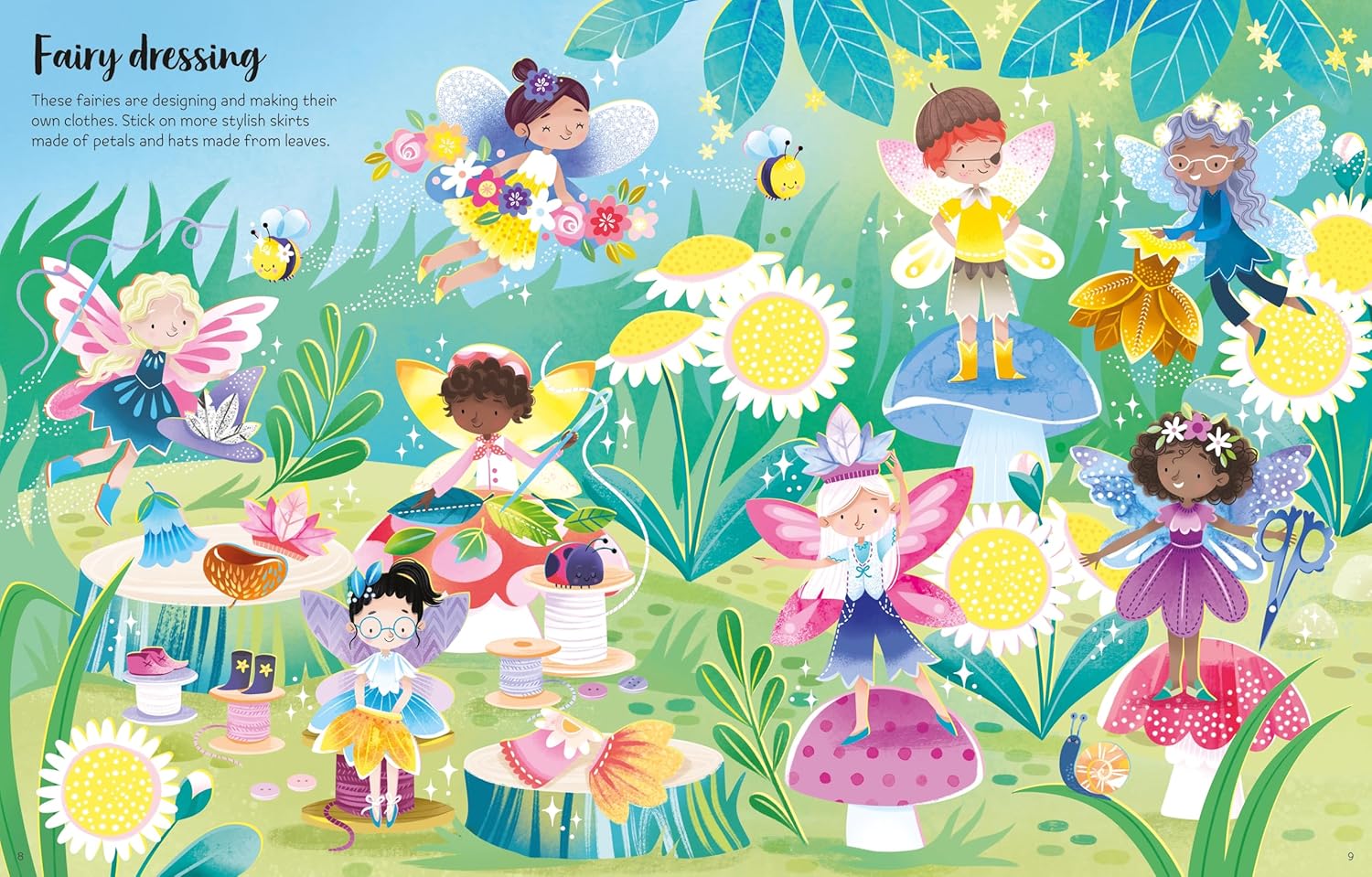 Discover the fairy village, wishing well and secret waterfall. Help the fairies to make pretty clothes and join them in dancing by moonlight. With over 150 sparkly stickers to add a sprinkle of magic to every scene.
