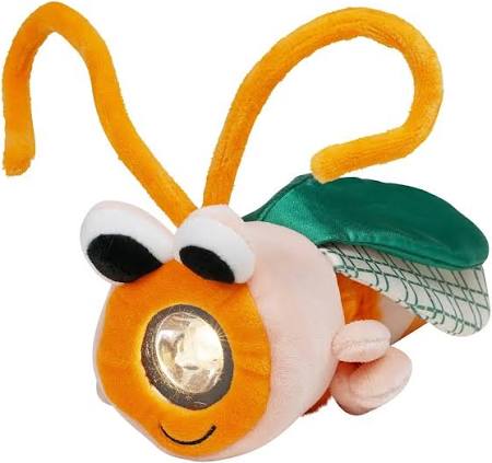 Is it a bug? A flashlight? It's both! Flyer the flashlight bug is a child-size flashlight with a removable plush exterior. Light your way through playtime adventures using the on/off button under the wings. Flyer comes with two replaceable AA batteries. To replace the batteries, lift the hook and loop closure located under the wings and pull the fabric covering away from the flashlight face. Twist the head of the flashlight counter-clockwise to access the battery compartment.