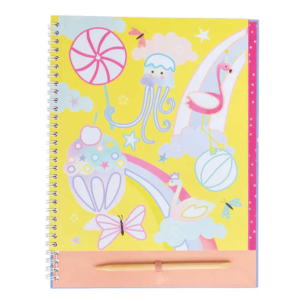 Make everything shimmer and shine with 8 fun illustrated pages to decorate! Peel off a white sticker, select a foil sheet and rub it onto the sticker area using the wooden stylus to make an amazing picture! This Fantasy design contains 20 different colour foiling sheets, 8 pages and a wooden stylus – all in a handy spiral bound book.
