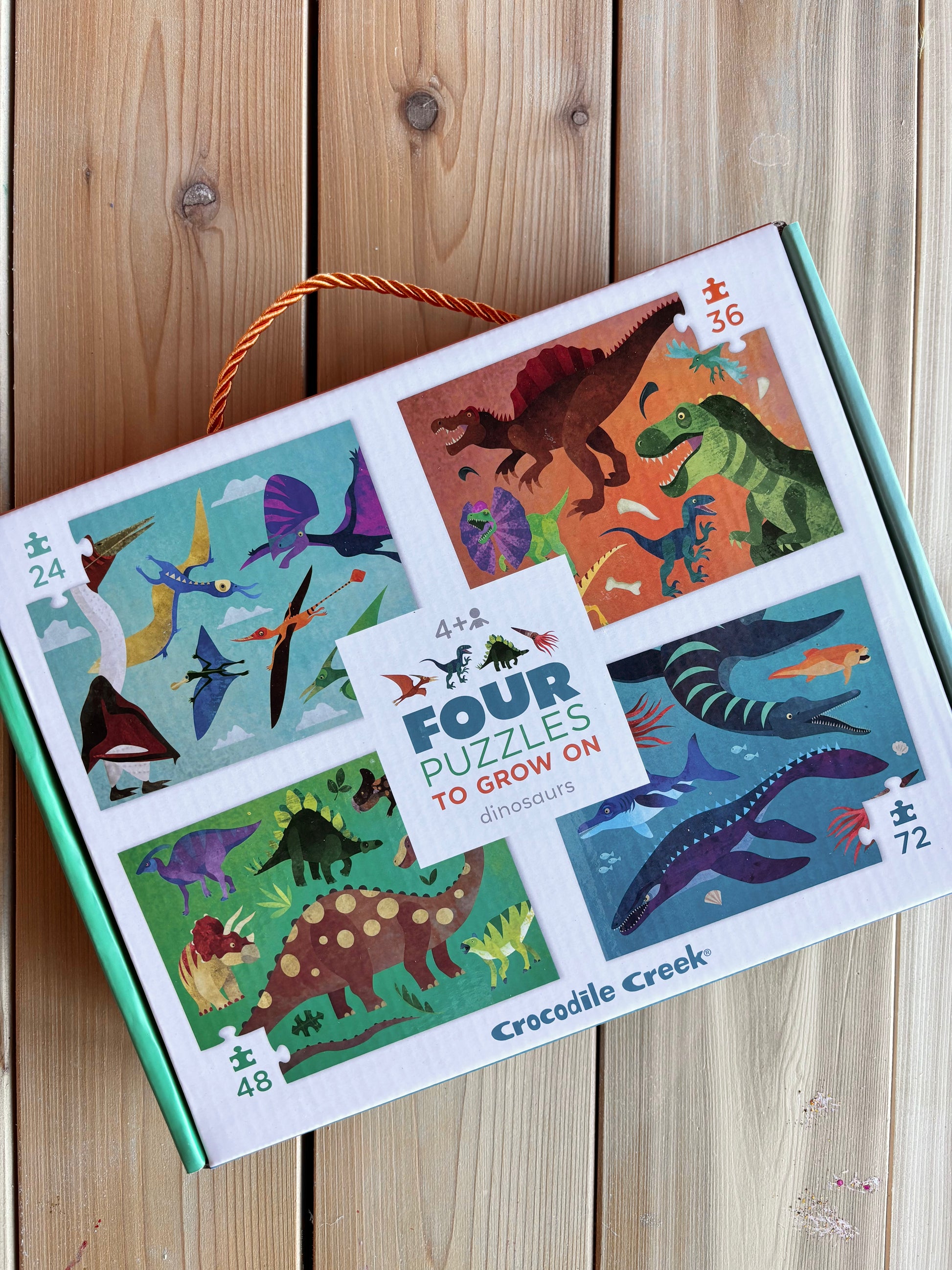 This set of four puzzles from Crocodile Creek lets little ones progress to more difficult puzzles as they grow! The set includes 24-piece, 36-piece, 48-piece, and 72-piece puzzles that are each color-coded on the back for easy sorting. This progressive puzzle set will promote a sense of mastery and build confidence for young puzzlers!