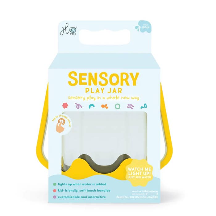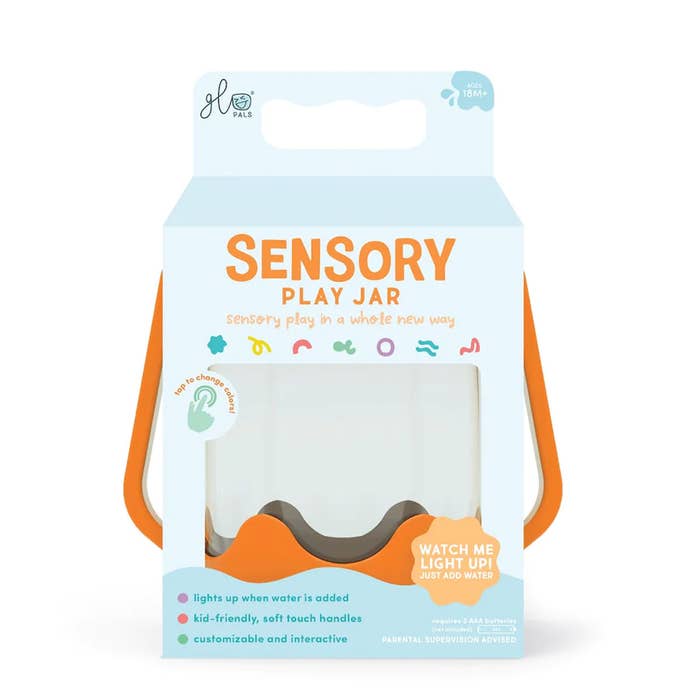 Pack some fun and adventure into your next outing with a Sensory Play Jar! Tap to change colors The Sensory Play Jar is perfect for playtime on the go with its locking, spill-proof lid. With 4 vibrant colors to choose from, you'll be ready for endless sensory fun! (Don't forget the 3 AAA batteries - they're not included.)