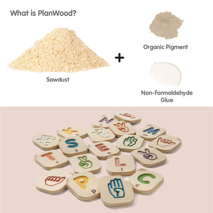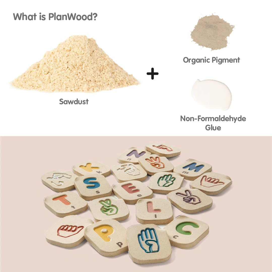 - Includes 26 tiles with uppercase letters and sign language on alternating sides