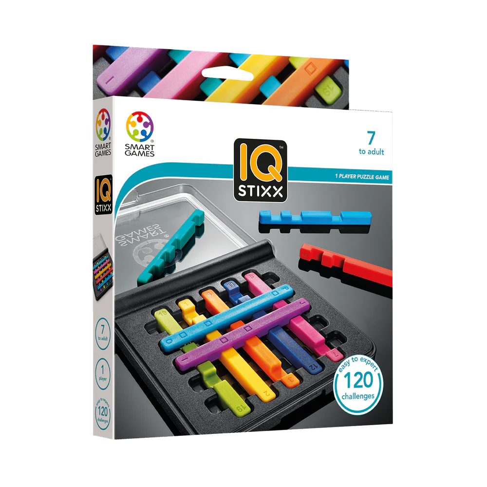 Discover the IQ Stixx game from SmartGames, an abstract logic and thinking game for ages 7 and up with 120 challenges to complete where you will have to be clever and place all the sticks on the game board.