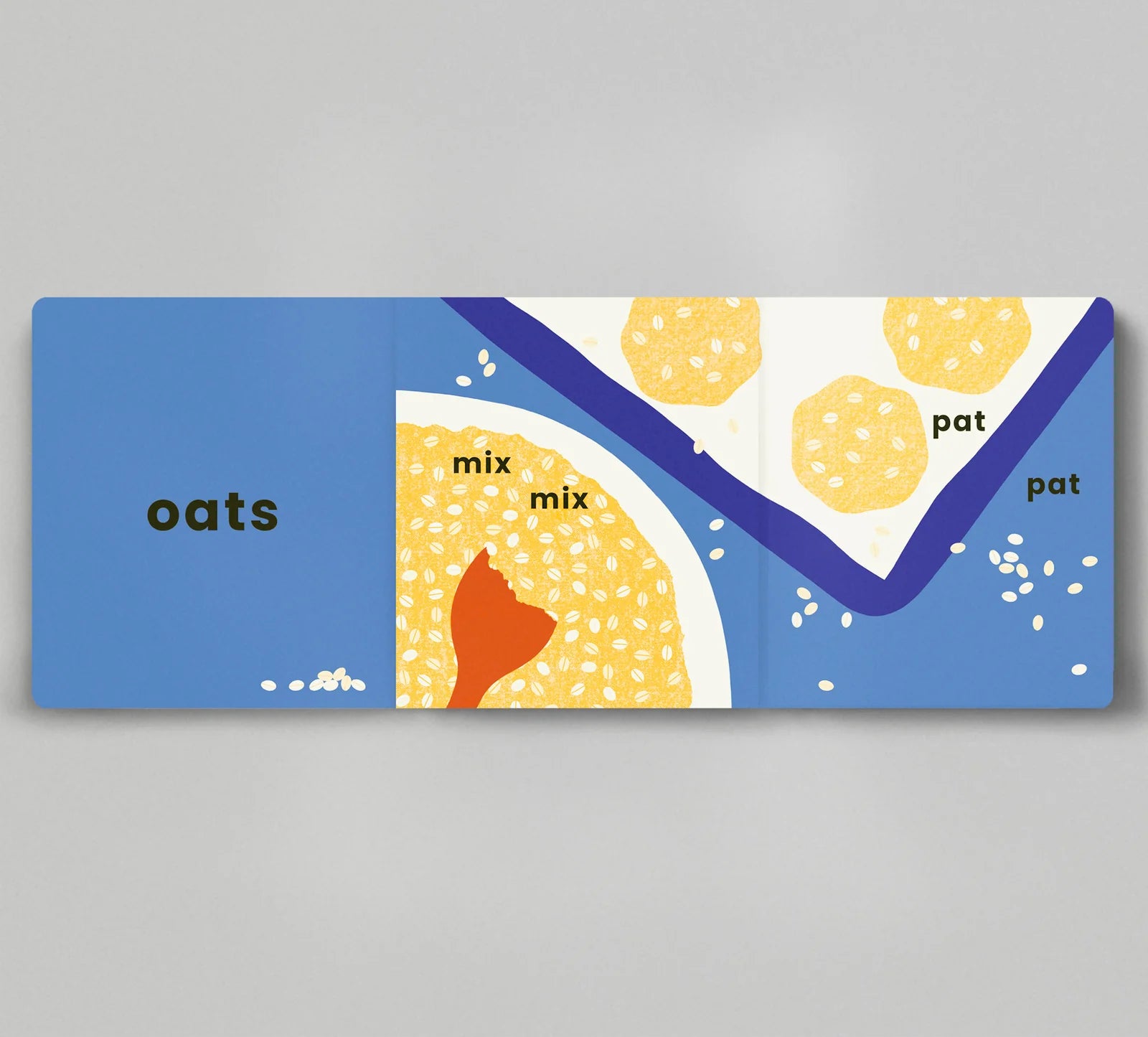 This recipe in a book features a new read-aloud word on every page. Lift the flaps to mash it, crack it, mix it, pat it... and make some apple crumble cookies!