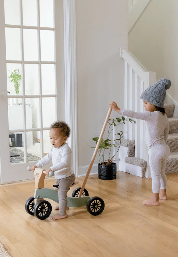 Is your newly-mobile little one eager to explore the world on wheels? The Kinderfeets Tiny Glider is a small 4-wheel foot-powered vehicle designed for young ambitious riders. An included push stick can be used by parents and adults to help guide children as they get used to the glider's maneuverability, and EVA airless tires prevent scratches on indoor surfaces.