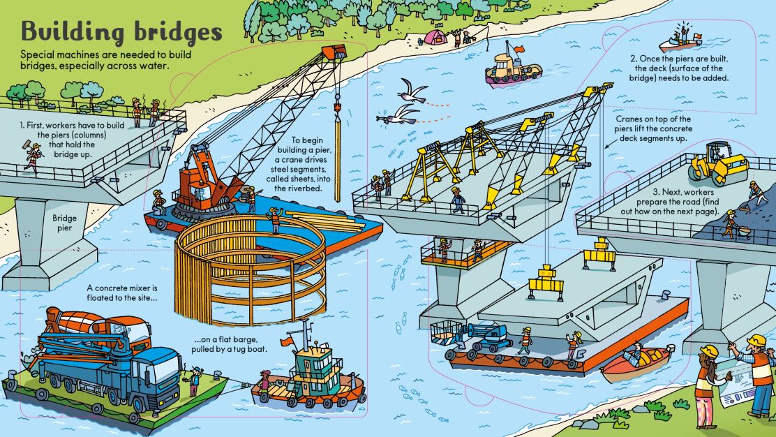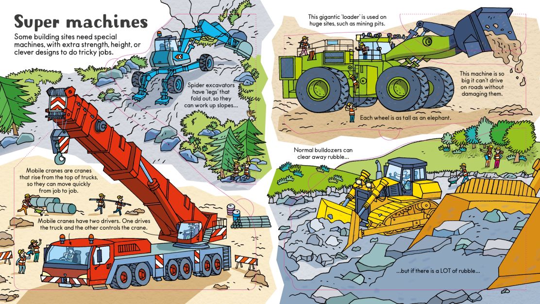 An action-packed book filled with construction sites to explore, construction machines to learn about and a demolition site in action. Lift the flaps to discover the work that goes into building a house, a bridge, a skyscraper and more, the jobs people do and the machines that are used. An exciting introduction to how buildings go up - and come down.