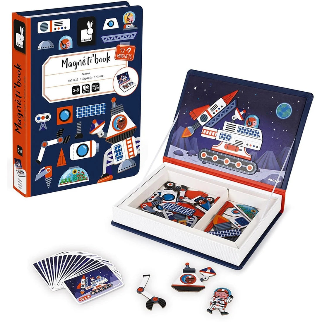 This cardboard game will allow little ones aged 3 and over to discover the mysteries of our universe and the planets with its 52 magnets and 18 cards. Inside, you can use the magnetic board to build a picture of the space vehicle shown on each card using the magnets provided. All the magnetic pieces are completely interchangeable, so kids can have hours of fun coming up with all sorts of crazy pictures! Helps children develop their imagination and fine motor skills.