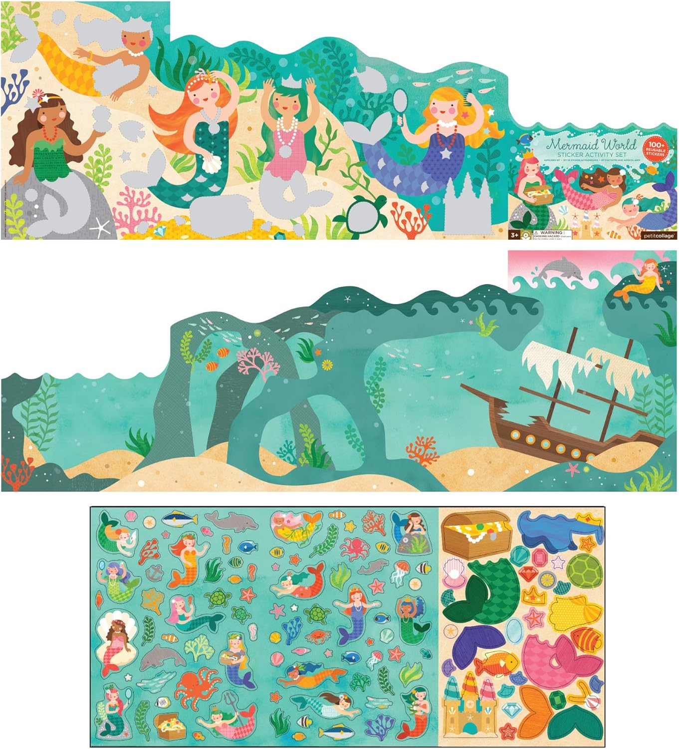 Hours of fun await with our Sticker Activity Sets. Our large foldouts feature playful detailed illustrations on both sides. Kids select from over 100 detailed stickers to fill in the engaging scenes. Matching activities and free play are encouraged. Compact and lightweight, perfect for fun at home and on the go! Closed measures 8.5" x 12", open set measures 34" x 12". Each set includes 3 pages of stickers. Made with FSC-certified paper printed with vegetable inks. Conforms to CPSIA, ASTM, and CE standards. Recommended ages 4 and up.