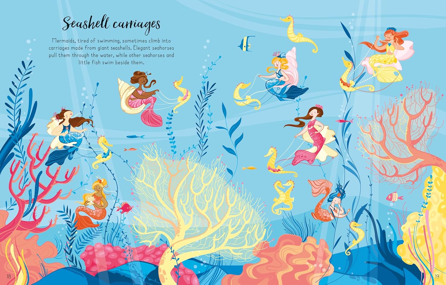 Enter a magical sticker underwater world where mermaids play with dolphins, pamper themselves in a deep sea spa, visit a seashell grotto, and bring presents to their mermaid queen. With over 250 stickers of mermaids, sea creatures, plants and flowers, including 80 extra-special sparkly stickers to decorate the pages.