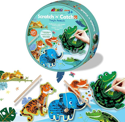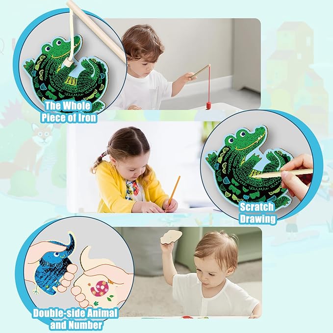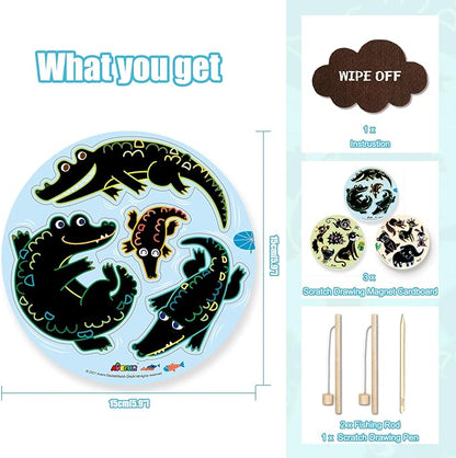 - These kits combine 2 fun activities by combining a traditional fishing game with scratch art!