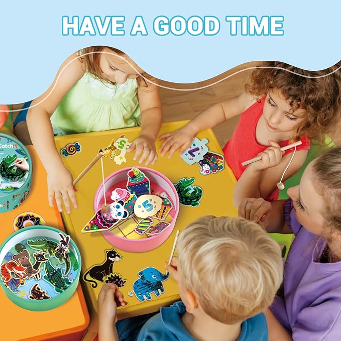 - Use the including etching tool to scratch out each piece, then try to pick them up with the magnetic fishing rod.