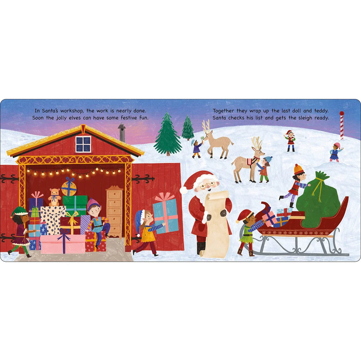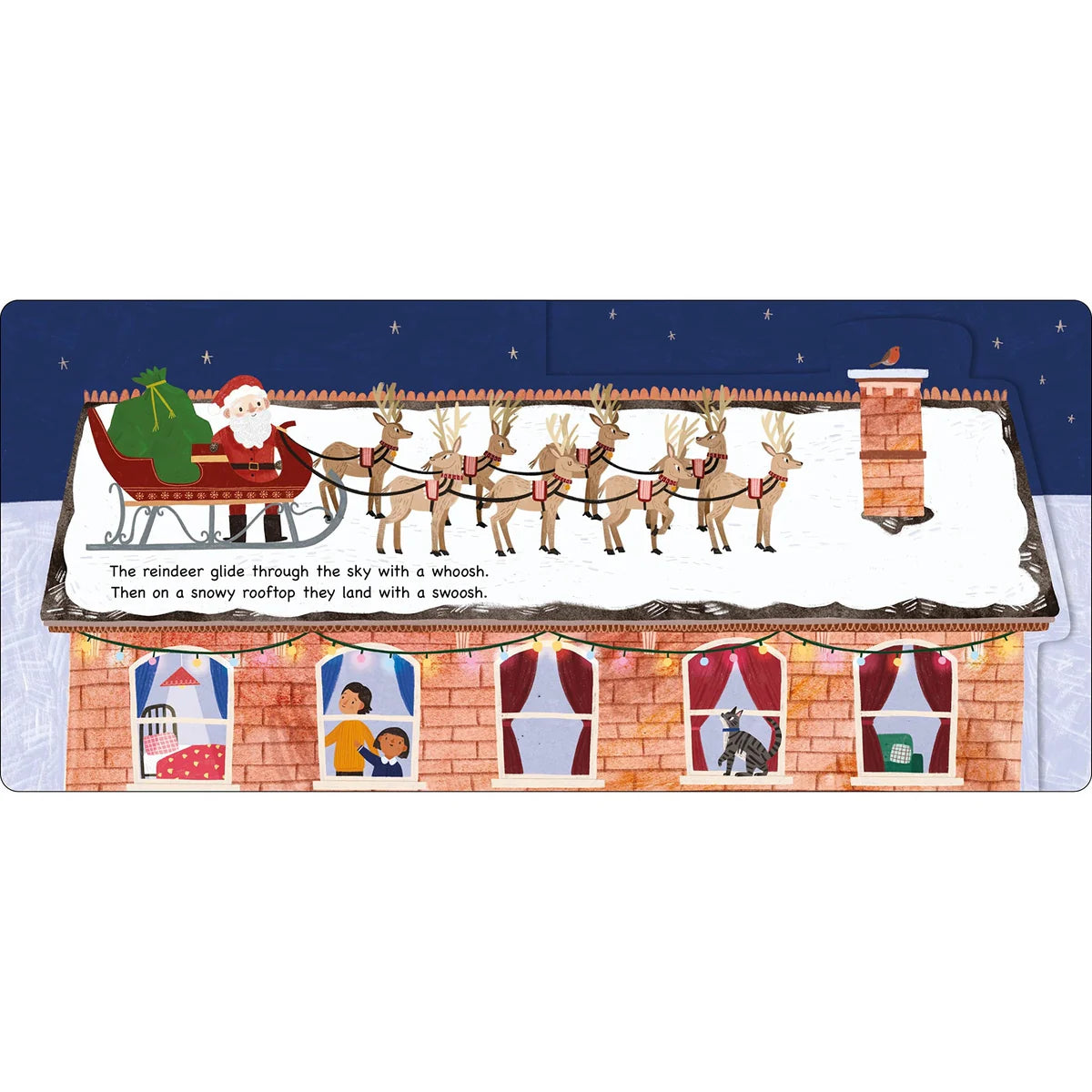 Watch as Santa visits lots of different homes, then turn the shaped pages to see the presents he leaves behind. Perfect for settling your little one into bed and ending with your own, quiet, "Night, night."