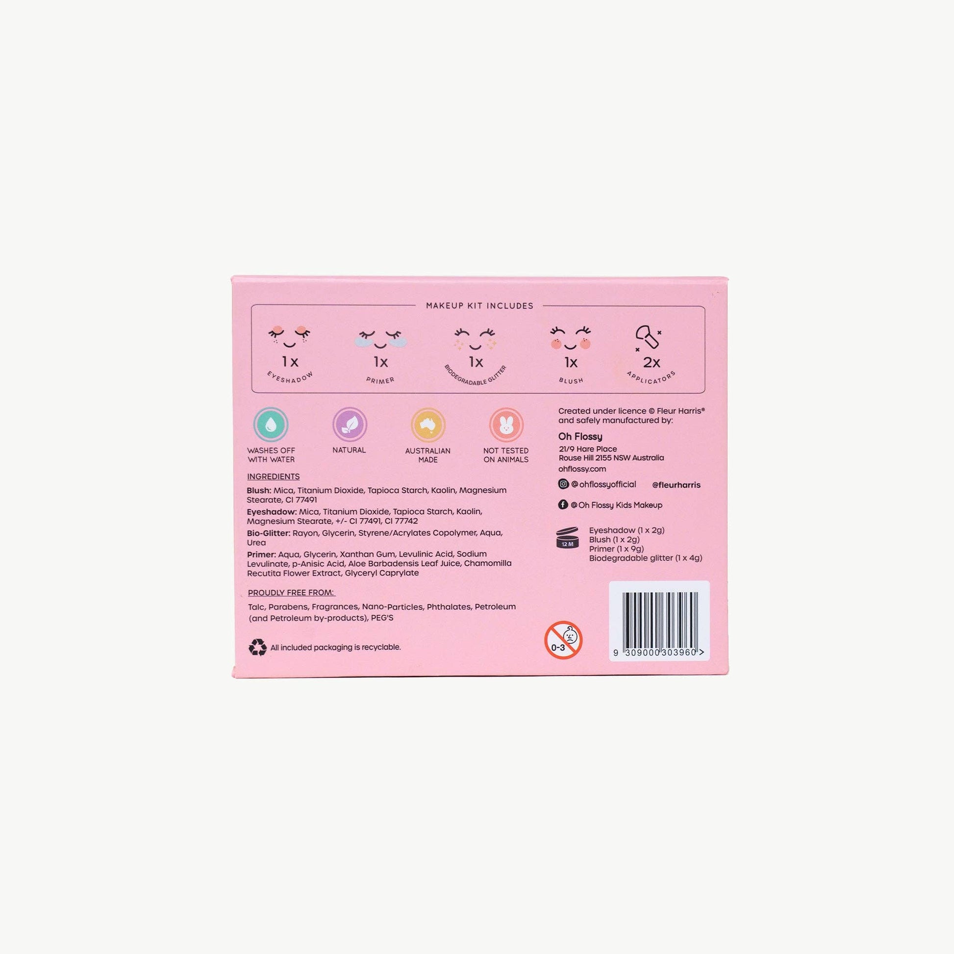 Our enchanting limited-edition Fleur Harris X Oh Flossy ‘Garden of Dreams’ Makeup & Glitter Set is perfect for children who love to dress up and play (and for parents who want to protect their little one's skin from harsh grown-up products). The 'Garden of Dreams' Makeup Set comes with 1 x eyeshadow, 1x blush, 1x Bio-Glitter, 1 x Primer – all delightfully colourful and shimmery and designed for hours of magical play. Removal is easy, with no harsh scrubbing or chemicals required - just use water! Handmade in Australia with Australian ingredients, this natural makeup set is packaged in a luxurious magnetic closing box making it perfect as a special gift! About Fleur Harris Fleur Harris is a celebrated Australian artist and designer, known for her enchanting, storybook-inspired illustrations that bring a touch of whimsy and wonder to every creation. With a passion for sparking imagination, Fleur’s intricate artwork transforms everyday moments into magical experiences, making her designs loved by child