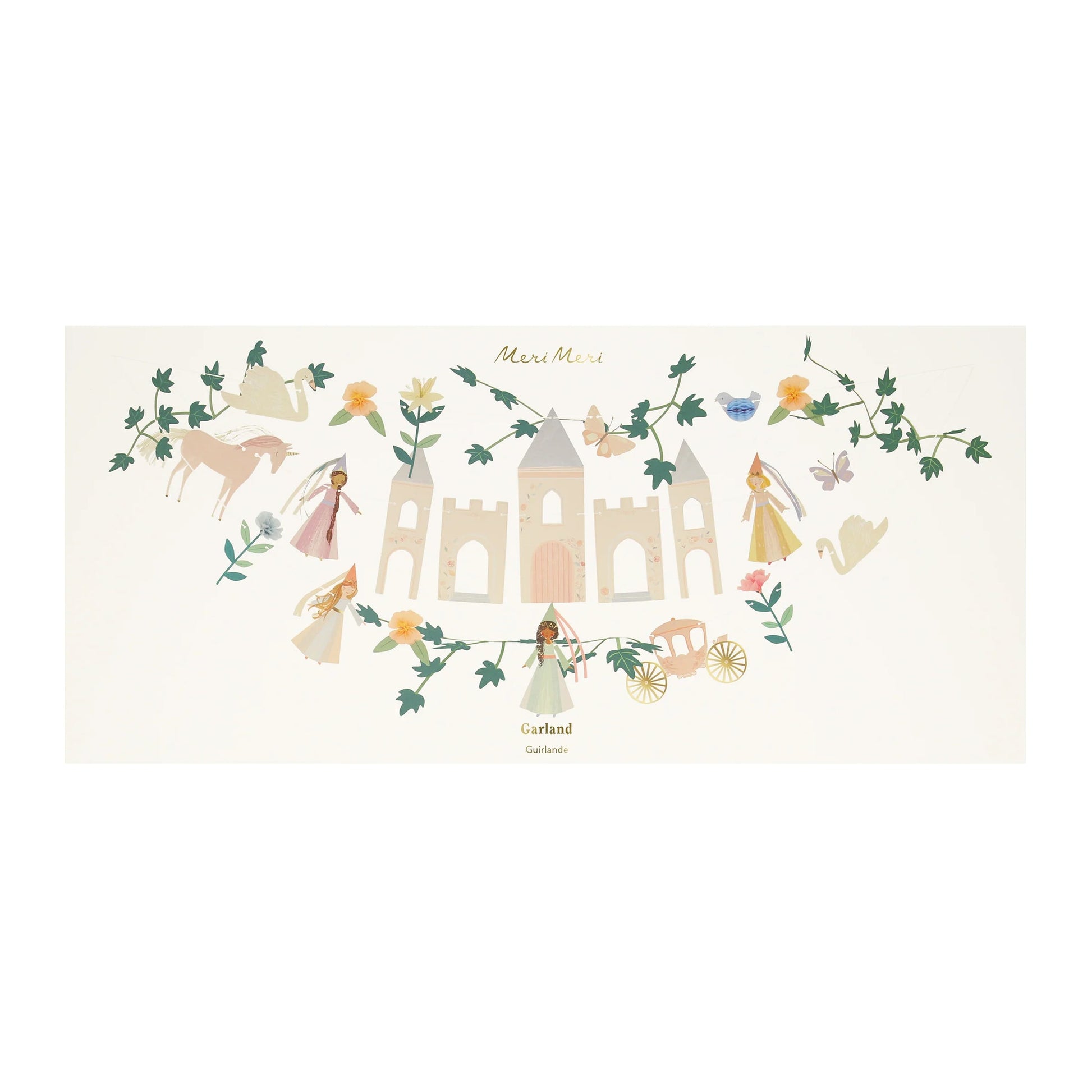 Create an enchanted fairy tale setting with this most majestic garland! Featuring princesses, a castle, a unicorn and a carriage, it will look magical at your princess party. It's also a beautiful decoration for the bedroom – make your kids feel like royalty all year round.
