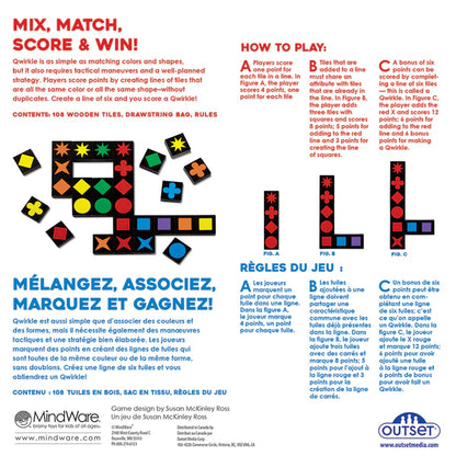 Qwirkle is as simple as matching colours and shapes, but it also rquires tactical maneuvers and a well-planned strategy. Players score points by creating lines of tiles that are all the same colour or all the same shape - without duplicates. Create a line of six and you score a Qwirkle!