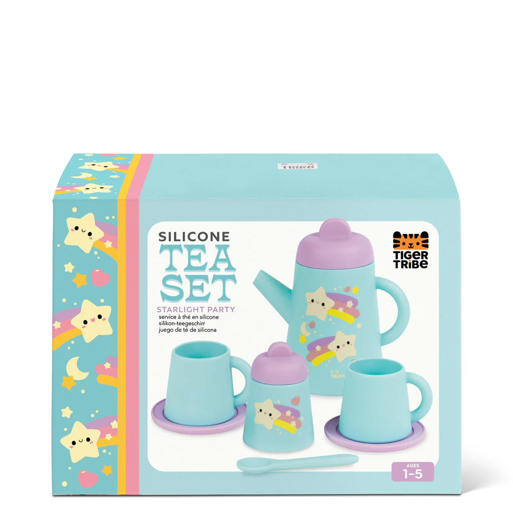 Tea parties just got sweeter with this gorgeous Starlight Party Silicone Tea Set. This versatile, classic tea set is made of kid-friendly, food-grade silicone that’s perfect for playtime. Great for pretend picnics, tea parties, messy sensory play in the outdoor mud kitchen or for creating bubble-chinos in the tub at bath time.
