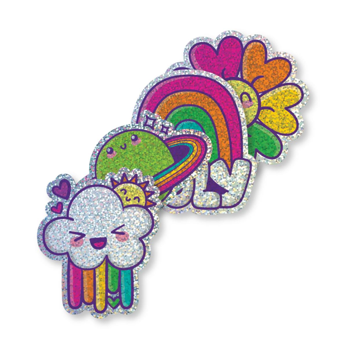 It’s hard to decide what our favorite feature is in this pack of four vinyl stickers. Is it the colorful rainbow theme? Is it because they have holographic glitter? Or is it because they’re waterproof? Then again, why choose?