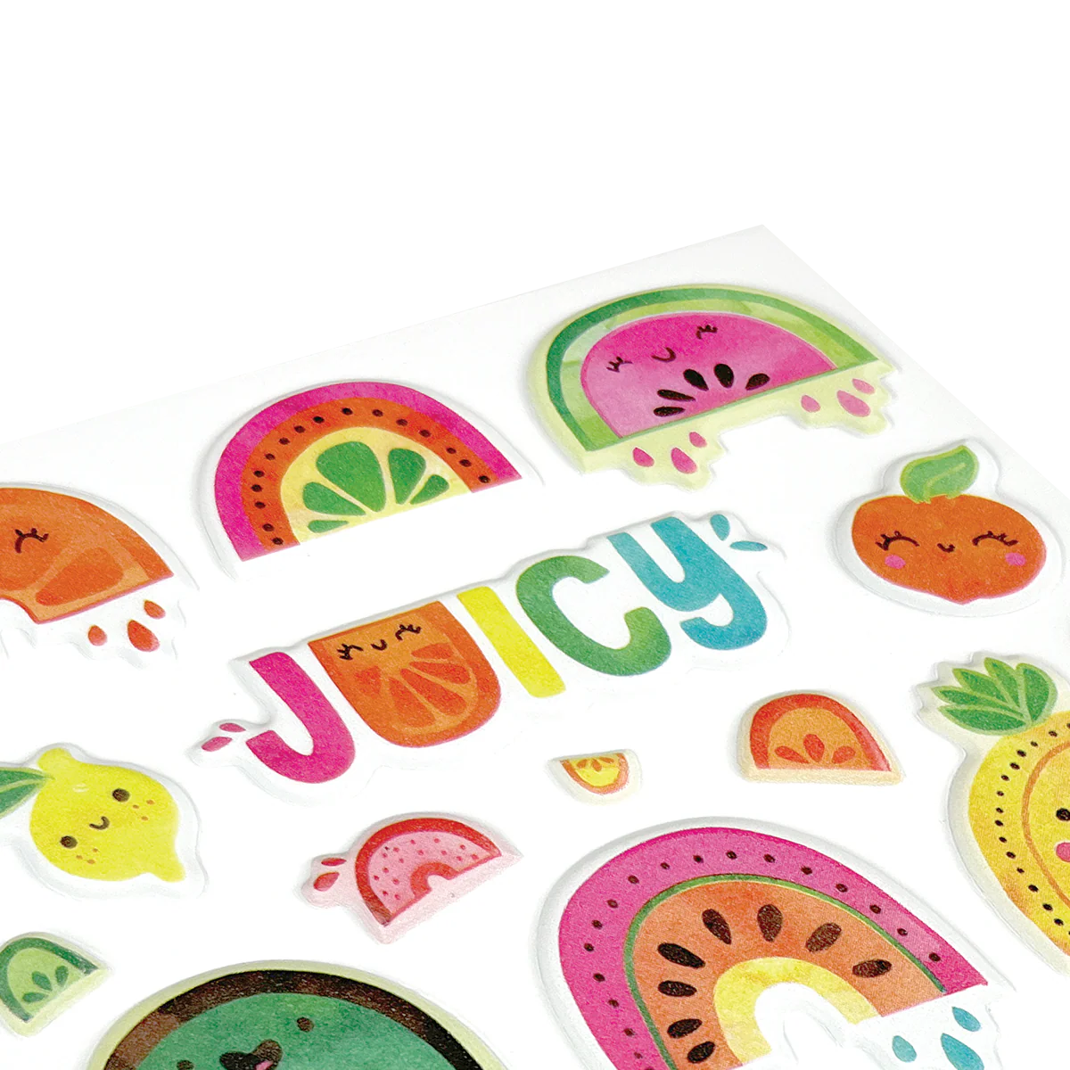 Puppies beware, these tutti frutti stickers from our Stickiville collection are pretty tough competition in the adorability category! From smiling melons to grinning citrus, these sweet as pie fruit stickers are sure to win over your heart! This darling sticker sheet is happy inducing and a great addition to anyone’s sticker collection. Then again, sticking these puffy stickers onto those humdrum items you use each day, like a notebook, pencil case, or lunchbox, can turn that boring item into something with charm and charisma!