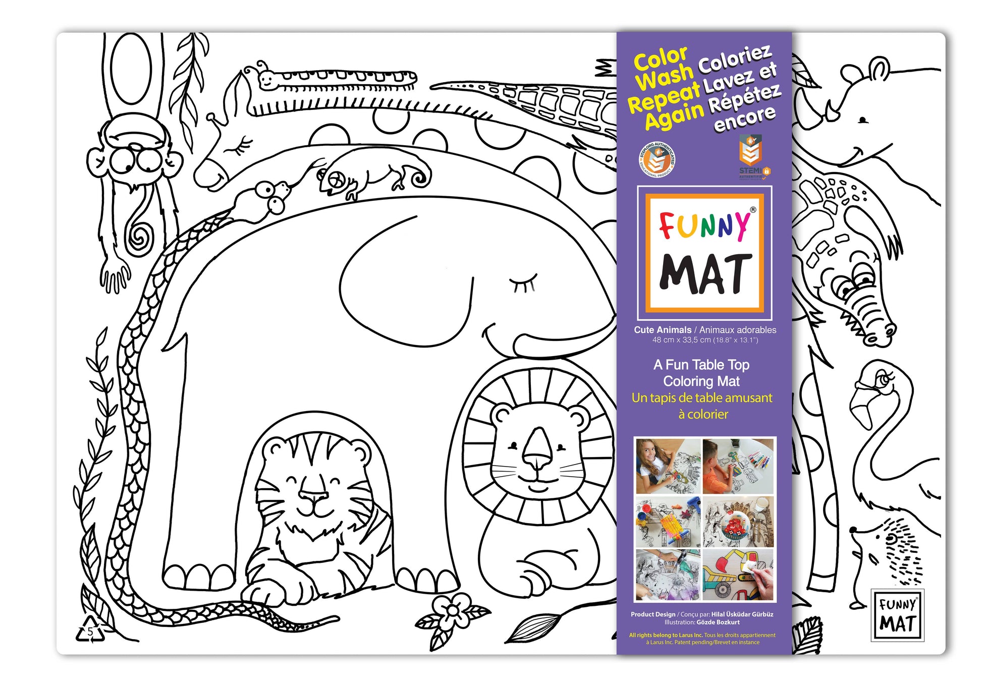 Funny Mat is a table top cover that can be used for craft projects such as drawing, coloring or as a protective mat for painting, plasticine and play dough or as a placemat. The designs on Funny Mat can be colored with water-based, washable markers. Funny Mat is made of polyproylene and is recyclable and reusable.