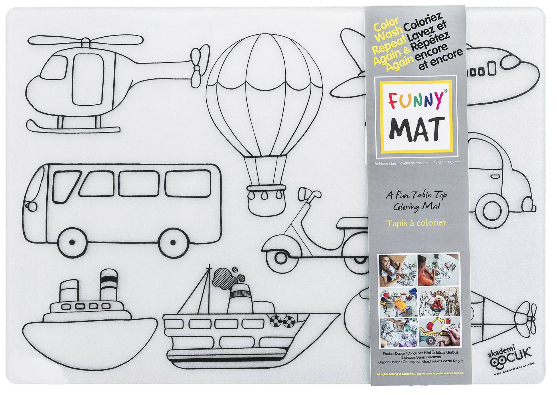 Funny Mat is a table top cover that can be used for craft projects such as drawing, coloring or as a protective mat for painting, plasticine and play dough or as a placemat. The designs on Funny Mat can be colored with water-based, washable markers. Funny Mat is made of polyproylene and is recyclable and reusable.