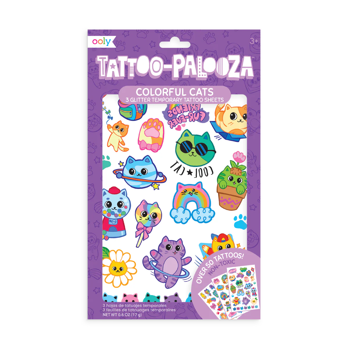 Tattoo-Palooza Temporary Tattoos - Colorful Cats - 3 Sheets