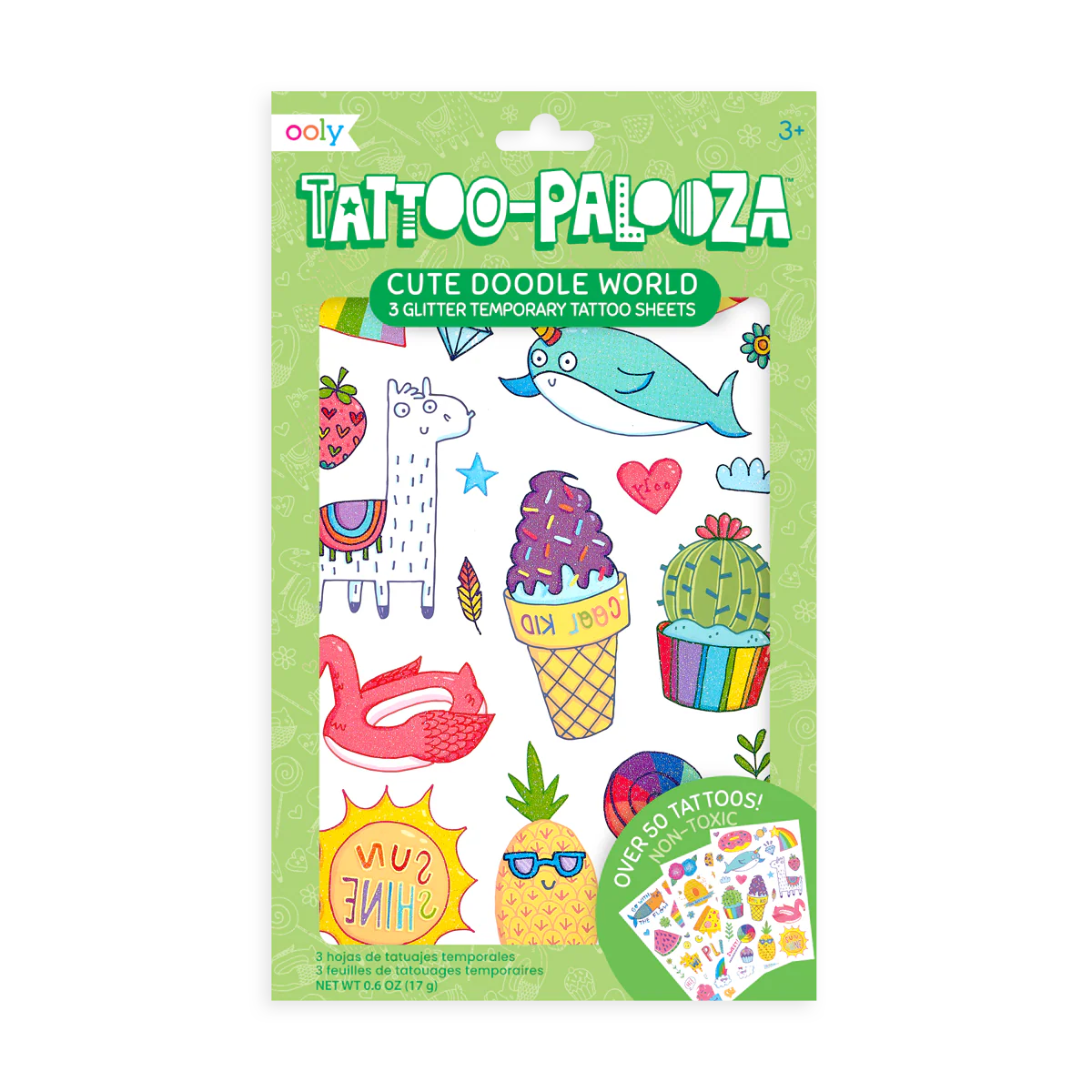Tattoo-Palooza Temporary Tattoos - Cute Doodle World - 3 Sheets