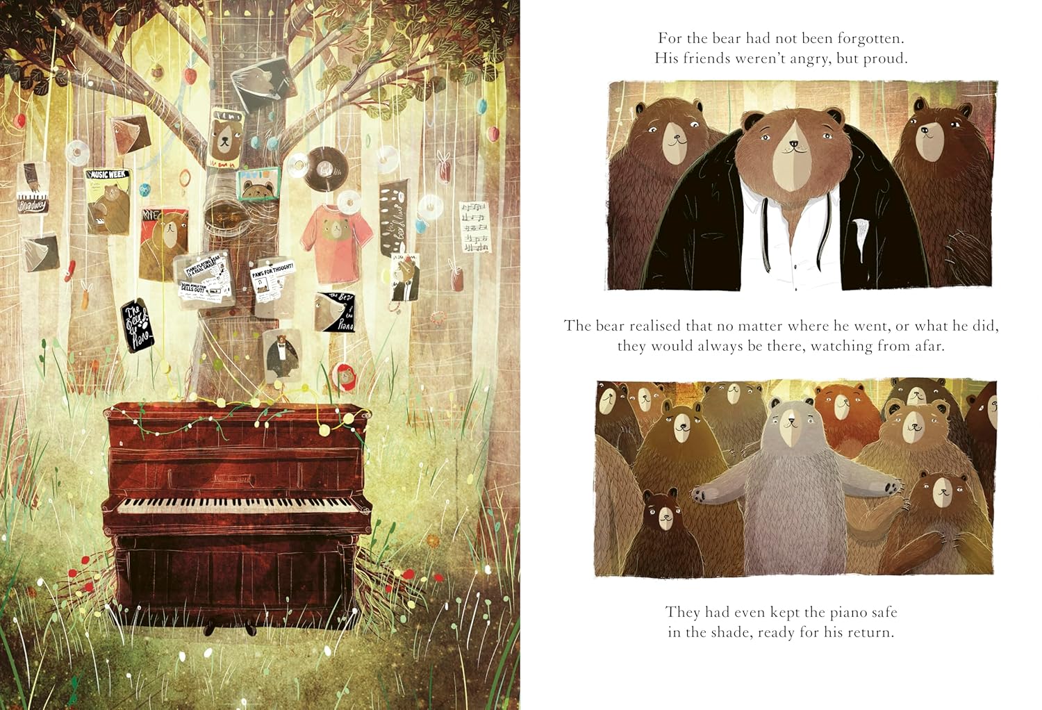 Then the bear is invited to share his sounds with new friends in the city. He longs to explore the world beyond his home, and to play bigger and better than before. But he knows that if he leaves, the other bears will be very sad . . .