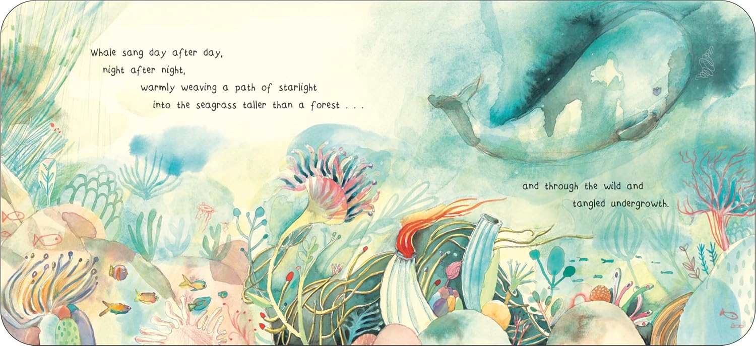 Whale's beautiful song winds its way through the ocean, reaching the farthest of faraways. His song is one of happiness and hope, magic and wonder--and Whale's fellow sea creatures are calmed, cheered, and lulled by it. But though Whale sings his tender song day after day, night after night, he wonders why he has no song to fill his empty heart. So when he lets out a mournful sigh, the ocean carries it like a wish through its fathoms, bringing it to just the right place.