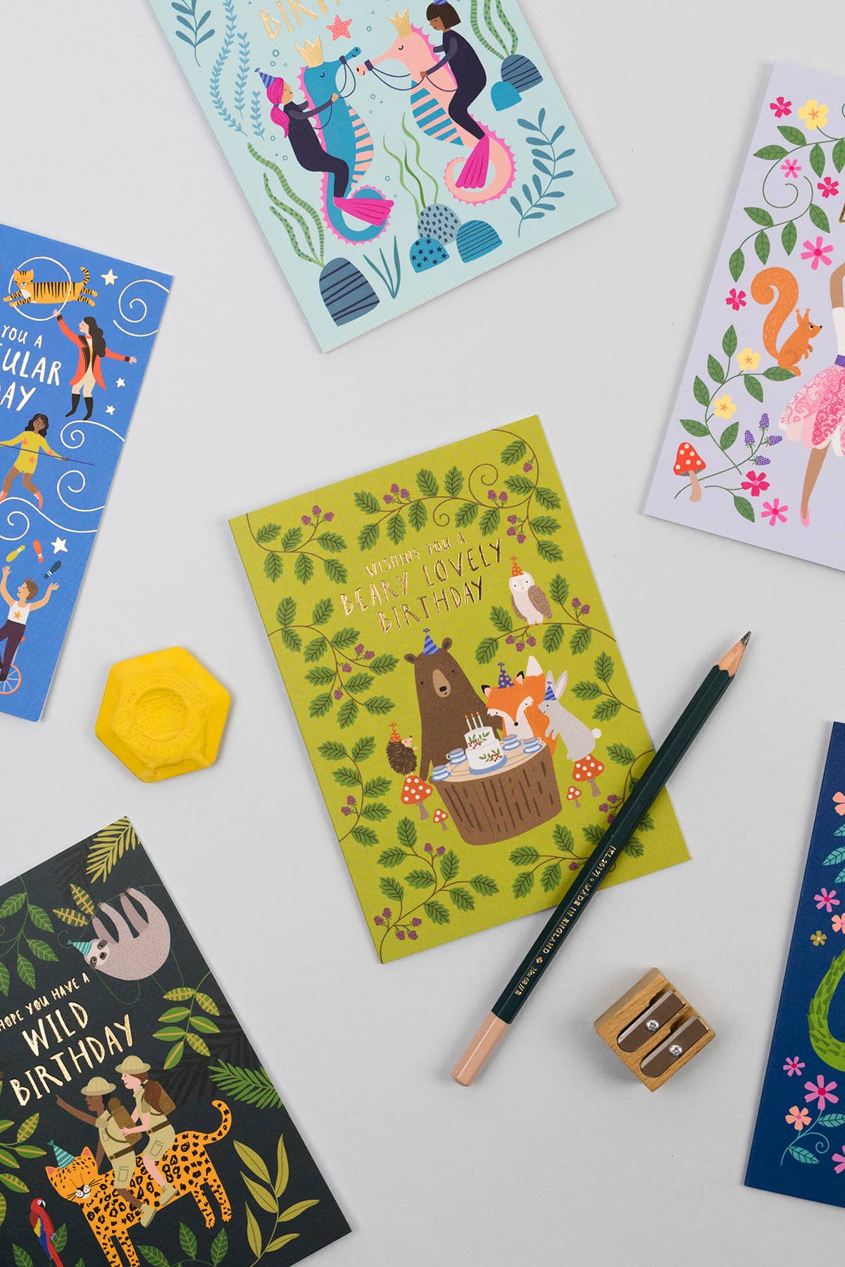 Take a dip in the sea with this illustrated children’s birthday card featuring a busy underwater scene. Swerving between the seaweed on the kid’s birthday card, two royal seahorses carry riders on their backs, taking them for an aquatic adventure. A gold foil caption tops the kid’s birthday card, reading “Wishing You a Happy Birthday”. Children’s Birthday Card Features: Size: 105mm x 150mm Uncoated premium, responsibly sourced card Gold foil details Paired with a recycled kraft envelope Blank inside Supplied without cello packaging Made in the UK T
