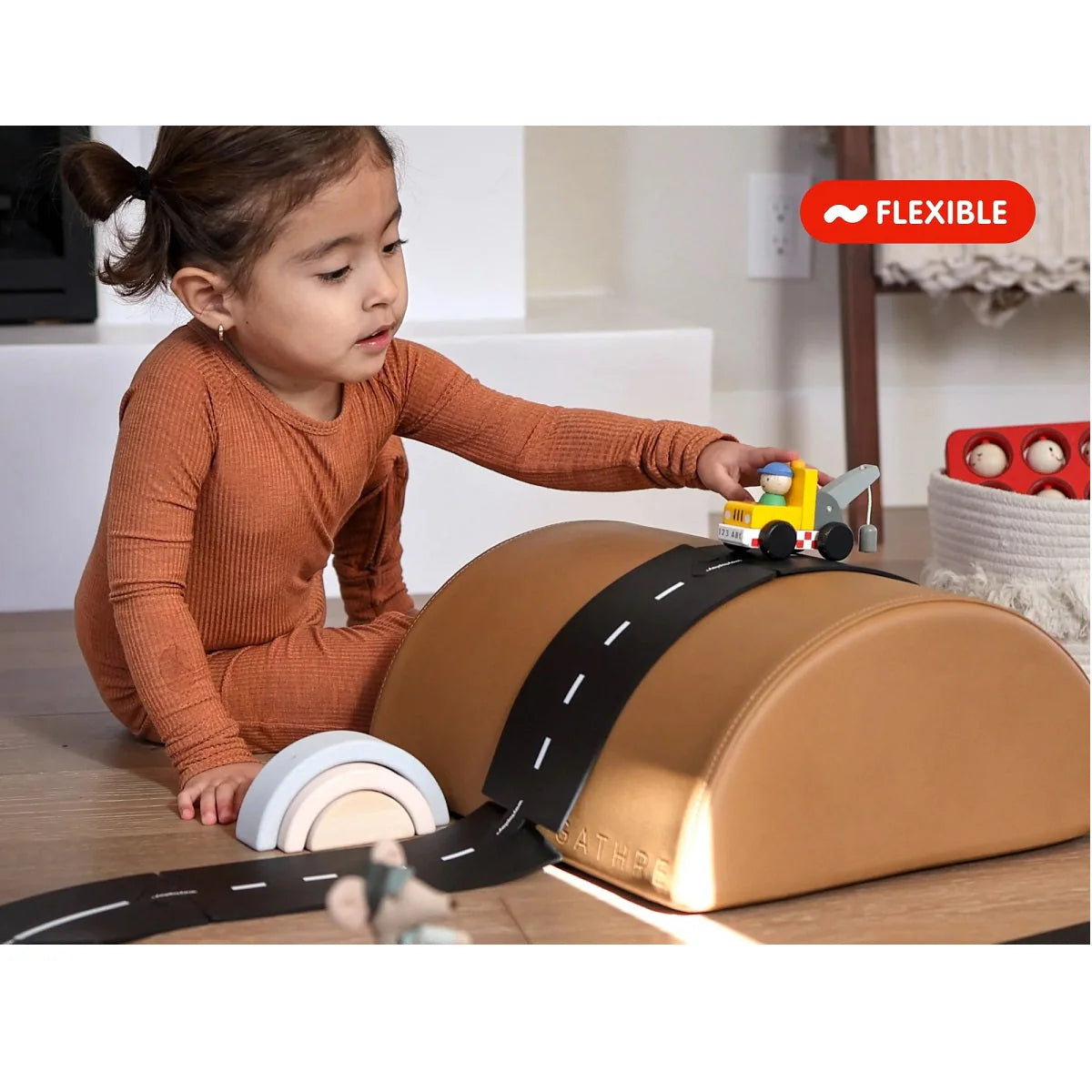 The 12 piece set provides a basic introduction to waytoplay. You can always add and expand your road by purchasing additional sets. The flexible rubber road is great indoors or outdoors as it can be laid out on almost any surface. This flexible road is also wipe clean perfect. Flexible, durable road toy, that measures 170 cm length.