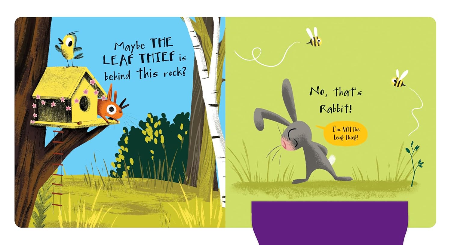 Squirrel and Bird go looking for the Leaf Thief and the missing leaves―inside the birdhouse? Behind the tree stump? And while they don't find a thief (it was the wind!) they DO find lots of other delightful discoveries! Following up on the fabulous New York Times Bestseller success of the Leaf Thief books, this board book has felt flaps that add tactile, interactive fun perfect for the youngest readers.