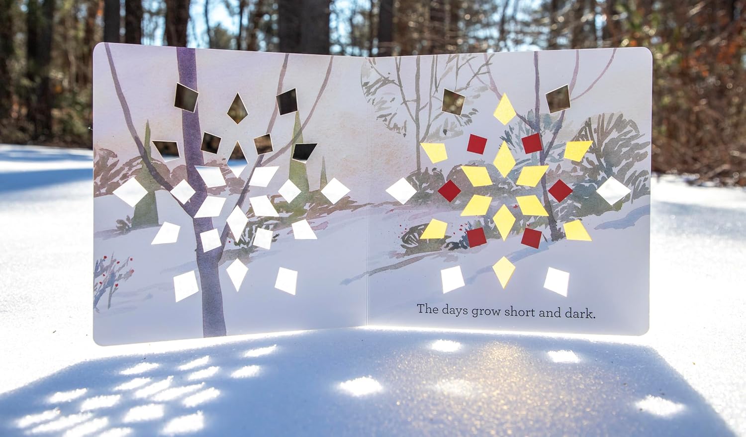 Come winter, the days grow short. Sunlight filters through bare branches as ice crystals cover the meadow. In this quiet time, we turn to warmth and light, to family rituals and traditions. With jewellike die-cuts revealing the colors of the season against soft painterly backgrounds, Caldecott Honoree Aaron Becker captures the light of winter skies and lengthening days, the glow of candle and hearth, and the heart’s yearning for spring’s return.