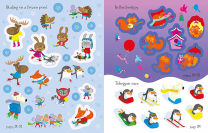 Join the adorable animals of Winter Wonderland as they have fun in the snow, go shopping for presents and dance in the forest. Add penguins tobogganing down the slopes, fill a glistening ballroom with waltzing mice, make a display of twinkling lights and decorate trees with lots of sparkly stars. This delightful book comes with over 200 stickers, including extra-magical shiny silver stickers.