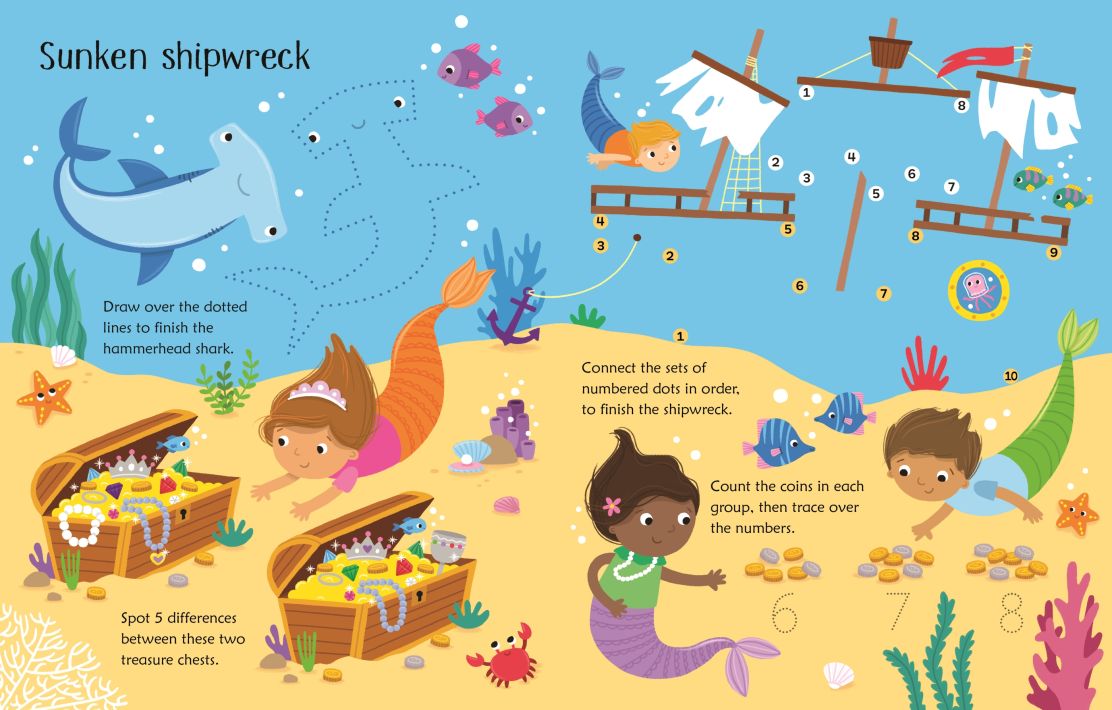 Meet Coral, Blue and their friends as you solve puzzles in their underwater world. Use the special pen provided to finish dot-to-dot pictures, spot differences, solve mazes and trace the dotted lines, then wipe the pages clean and repeat. This fun book is a perfect way for young children to develop vital counting, observation and pen control skills.