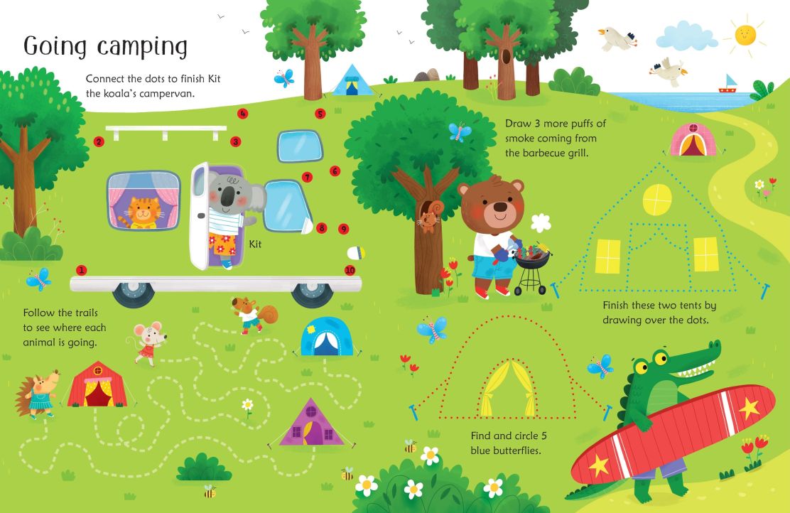 Visit the beach, go on a camping trip, relax by the pool and zoom down ski slopes in this entertaining activity book. The activities are designed to help young children develop their counting, observation and pen control skills, and the durable pages can be wiped clean so the book can be enjoyed again and again.