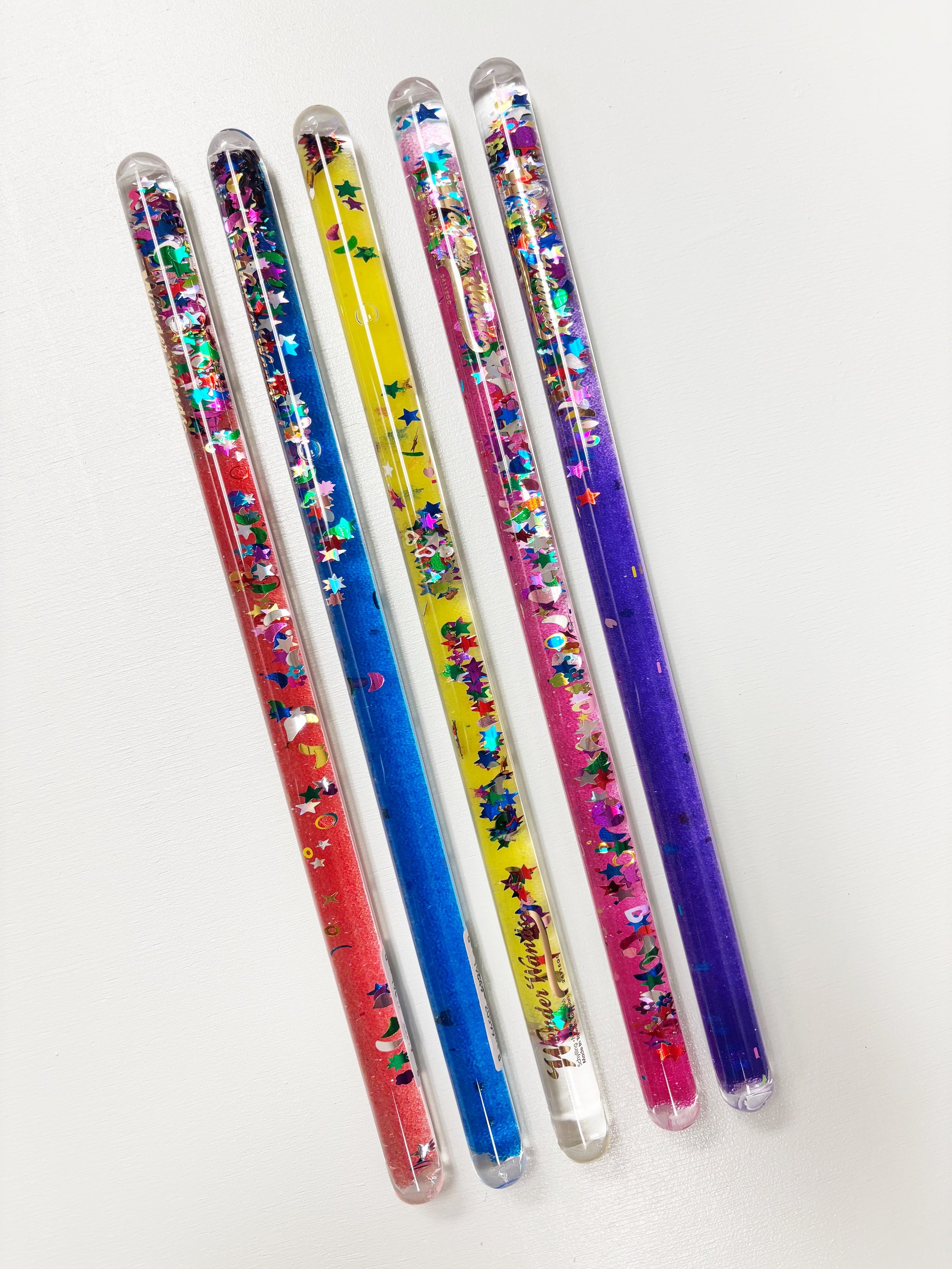 The best wand for any occasion. These dreamy glittering wands work great for little fairies, sorcerers, wizards, superheros, witches, magicians, or whatever other beings little minds can conjure up! Liquid filled wands are filled with glitter and stars for a truly magical and effective display of powers. Bring a little magic into your kiddos life, but just remember to be careful what you wish for — these wands are packed with more wonder than any "grown-up" could ever know!