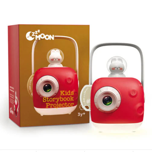 ZzzMOON is a bedtime audio story projector for kids that contains a story machine, 1 figure, 8 story slides, 1 picture book and instructions.
