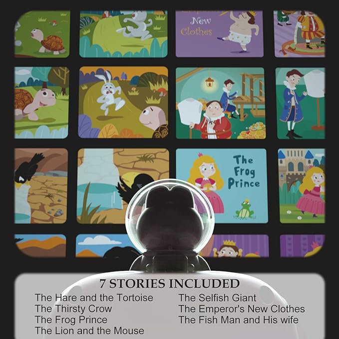 Includes a rabbit figure that contains 8 fairy tales and 64 scenes, and when used with the story film, you can play the picture while telling the story!
